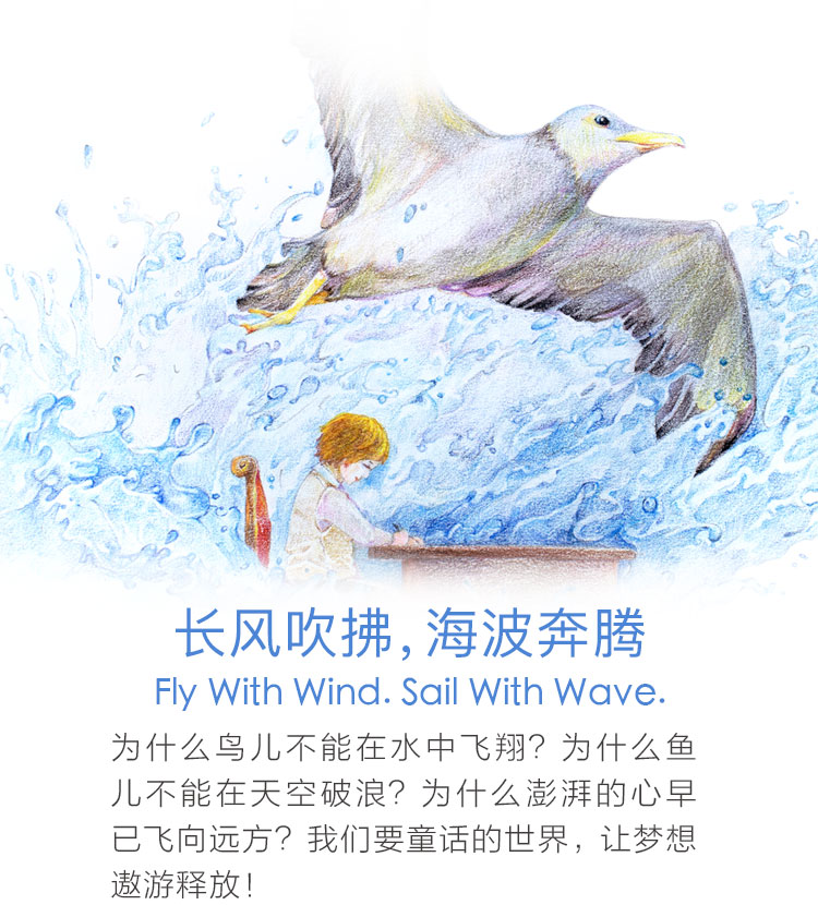 随长风吹拂,任海波奔腾 为什么鸟儿不能在水中飞翔?为什么鱼儿不能在天空破浪?为什么书桌前的时间如此漫长? 为什么澎湃的心早已飞向远方?那为何不拿起彩笔,将梦想画在纸上?