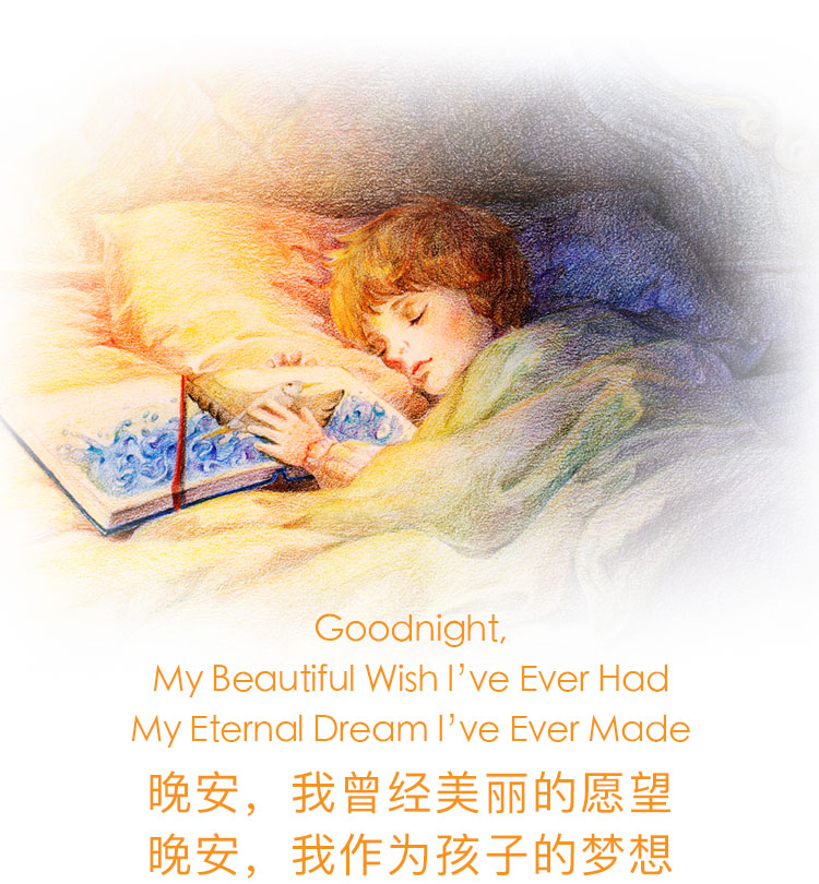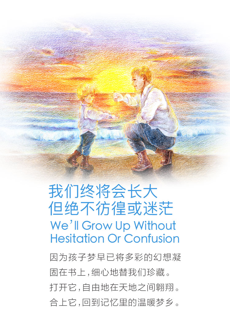 我们终将会长大, 但不会彷徨或迷茫 因为孩子梦早已将多彩的幻想凝固在纸上,细心地替我们珍藏。 打开它,自由地在天地之间翱翔。 合上它,回到记忆里的温暖梦乡。